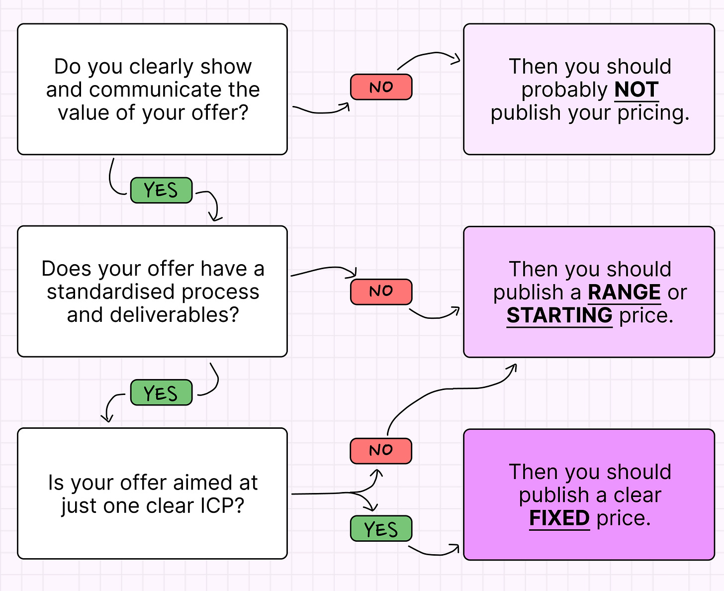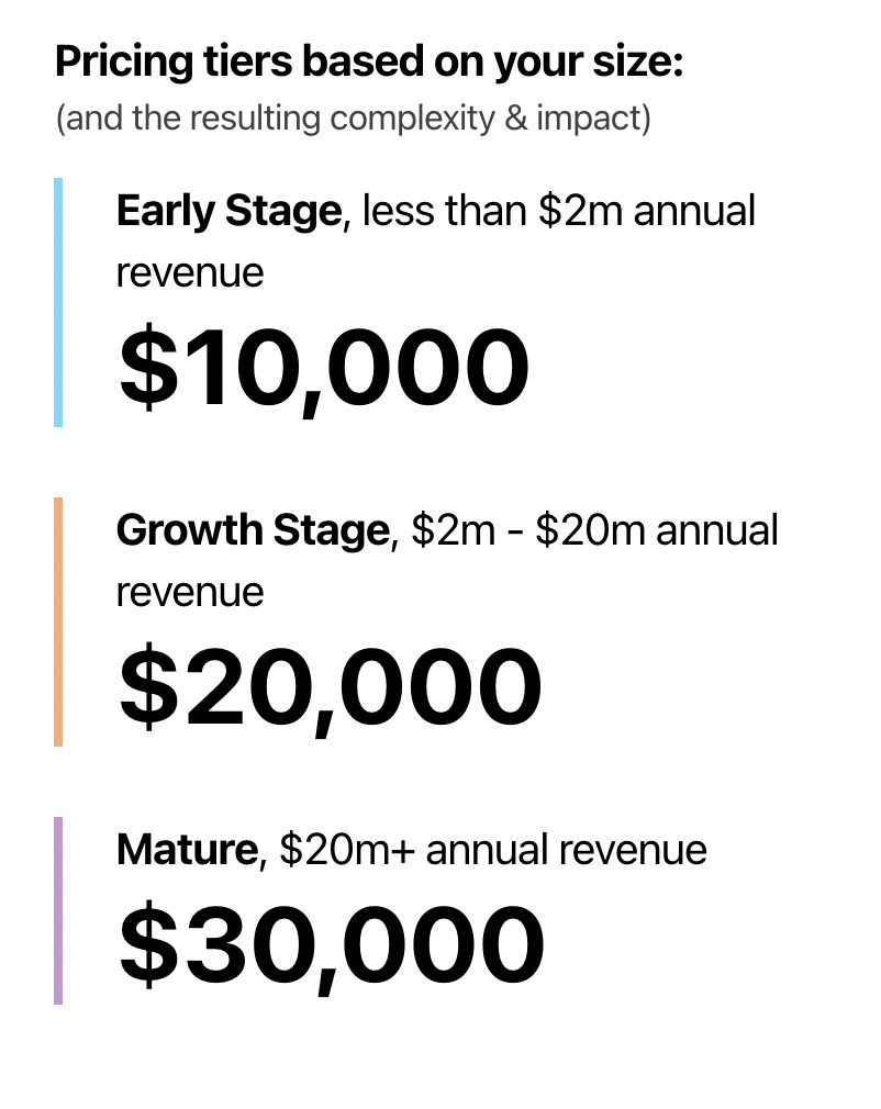 That being said, if you do have multiple target clients (or there’s a bit of a spectrum - on size for example) then it might be tough to have one fixed price. In which case, I recommend using the range or starting prices that I explained in the section above.