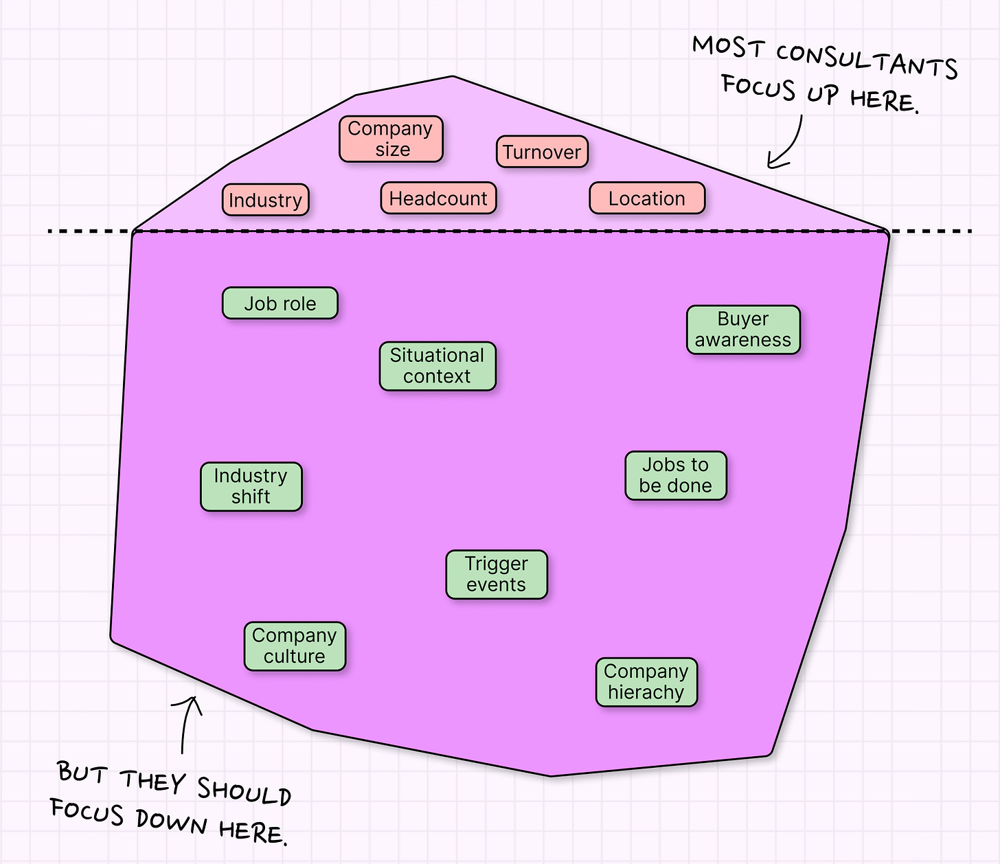 Most people see “just niche down” and read it as “pick an industry to specialise in”. Which is how you end up with those kinds of awful ICP examples I gave above.